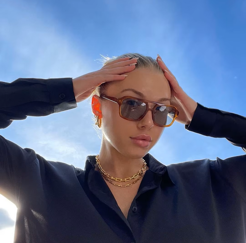 Commanding and unapologetic, Hano is made for those who like their eyewear as bold as their presence. The squared frame with its signature cut bridge delivers an unmistakable retro edge, perfect for city streets and summer escapes.